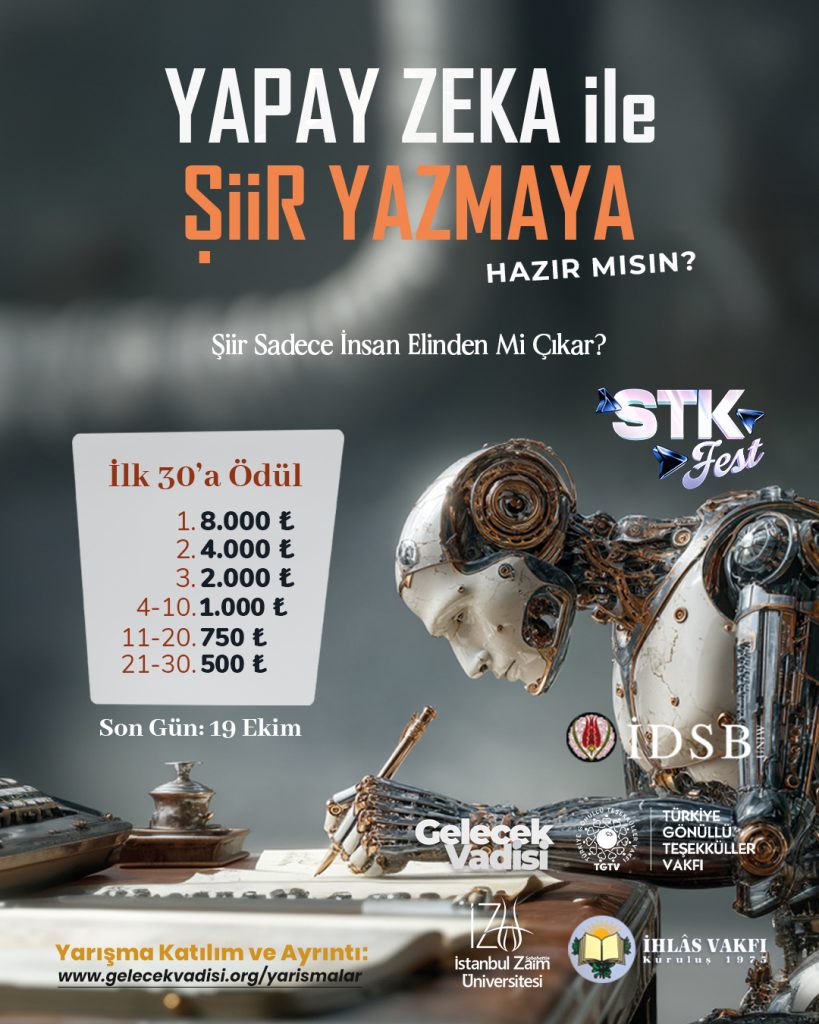 Sanatın en eski ifade biçimlerinden biri olan şiir, yüzyıllar boyunca insanın duygularını, özlemlerini ve hayallerini en güçlü şekilde dile getirmiştir. Bugün ise insanlığın en yeni keşiflerinden biri olan yapay zekâ, üretkenliği ve farklı bakış açılarını sanatın hizmetine sunmaktadır. İhlas Vakfı olarak, bu iki farklı dünyayı buluşturmak amacıyla düzenlediğimiz Yapay Zekâ ile Şiir Yazma Yarışması, hem teknolojiyi hem de edebiyatı gençlerimizin kaleminde bir araya getirmeyi hedeflemektedir.